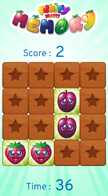 - Memory : comme son nom l’indique il s’agit d’un modèle de jeux de « memory » dont le but est de trouver le maximum de paires d’images dans un temps imparti.