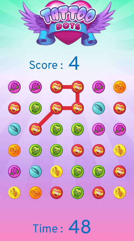 - Dotty : il s’agit d’un modèle de jeu dont le but est de créer un maximum de chaines de points de la même couleur dans un temps imparti.