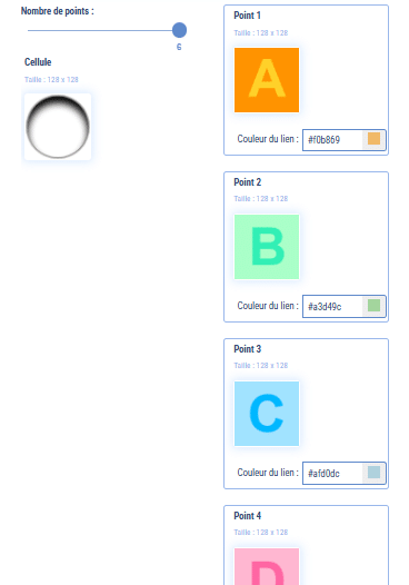 Pour chaque point vous pouvez modifier son image et la couleur du trait qui les reliera. Il faut noter que, quelle que soit l’image que vous mettez, seule la partie circulaire centrale sera prise en compte.