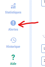 Il est possible de consulter les alertes en cliquant sur le bouton suivant qui se trouve dans la navigation à gauche de votre écran :
