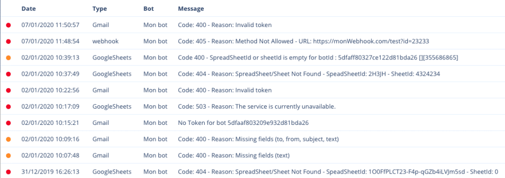 Attention, recevoir une alerte ne signifie pas forcément que le service ne fonctionne plus du tout. Ca peut-être une panne spontanée en fonction de l’erreur. Vous recevrez une alerte pour chaque échec qu’a connu votre Chatbot.