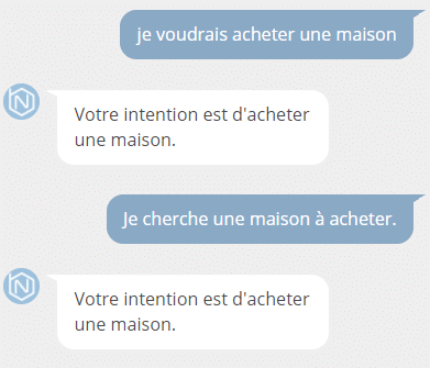 Si l’utilisateur saisit “Je cherche à devenir propriétaire d’une villa” son intention est “l’achat d’une maison”.