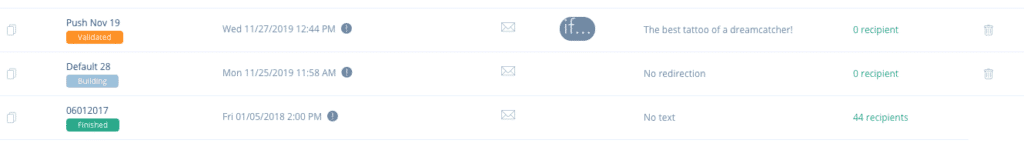 - Si vous voulez vous servir d’une campagne existante comme modèle, il suffit de la dupliquer en cliquant sur l’icône en début de ligne.