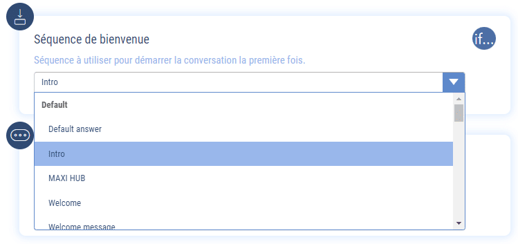 Par défaut, la séquence de démarrage de votre chatbot est le « Message de Bienvenue » mais vous pouvez configurer le chatbot pour qu’il démarre sur une autre séquence.