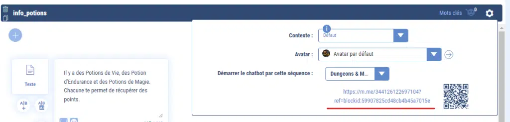 Vous pouvez choisir de faire démarrer le chatbot à des séquences différentes selon le lien cliqué plutôt que systématiquement au message de bienvenue.
