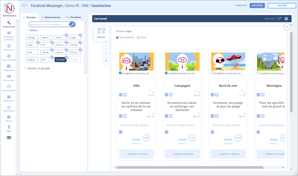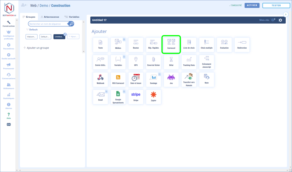 Vous souhaitez ajouter un carrousel à votre chatbot