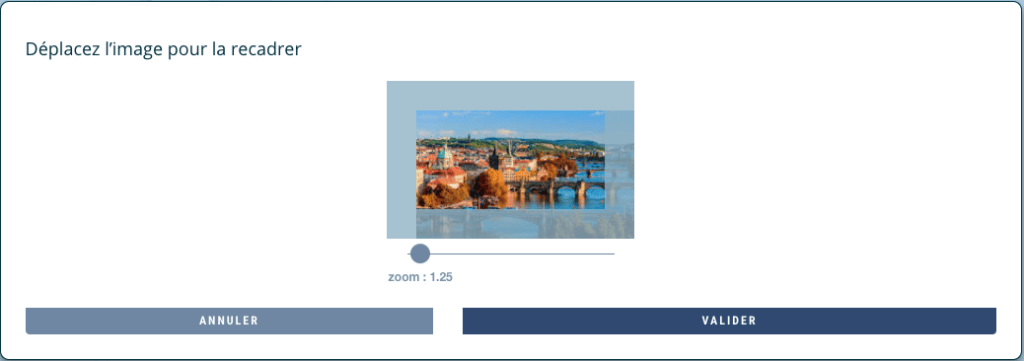 Il vous suffit de déplacer l’image à l’intérieur du cadre pour choisir la partie qui sera affichée dans le carrousel. Vous avez aussi la possibilité de zoomer.