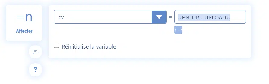 L’URL du fichier envoyé sera stockée dans la variable {{BN_URL_UPLOAD}}