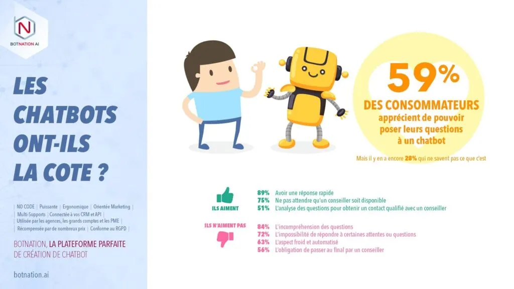 ” More and more, websites are offering interactive, automated communication tools. What we call “chatbot” and comes from the term “bot”, short for “robot” and the English word “chat” for “to discuss”. Talking with a bot therefore refers to a program designed to converse with users via a messaging platform or application such as Facebook Messenger or WhatsApp. But what do consumers and professionals really think of these conversational agents? That ‘s what we wanted to determine with this survey, to find out more about this conversational relationship, often the first contact with the brand or company “, commented Emmanuel Françoise, co-founder of Botnation.