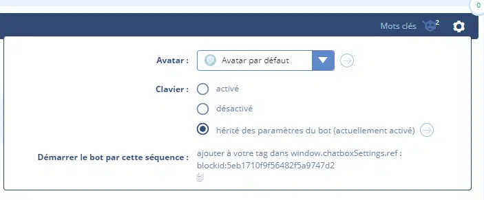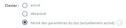 le paramètre par défaut qui détermine le comportement du bot vis à vis de la saisie utilisateur se trouve dans la rubrique “PARAMÈTRES” onglet “Configuration du chatbot” (voir l’article Comment désactiver le clavier du chatbot).