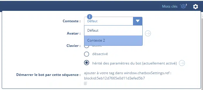 Si vous avez activé les contextes, c’est aussi dans ce menu que vous pourrez faire votre choix.